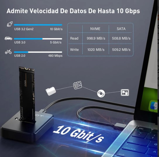 Velocidad de transferencia: NVME 10 Gbps/SATA 5 Gbps